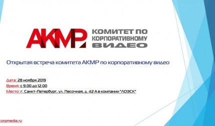 Добрый день, уважаемые коллеги! Будем рады видеть Вас в числе гостей на открытой встрече комитета АКМР по корпоративному видео, которая пройдет 28 ноября 2019 года в компании "ЛОЭСК" по адресу: г...